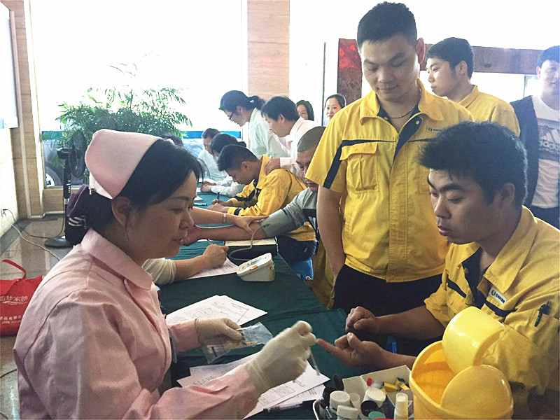公司总经理张晓阳、副总经理尹勇带头参加义务献血活动。从高层领导到一线员工,大家踊跃报名,热情高涨。还未等工会主席肖雄兵宣读义务献血倡议书,大家就卷起袖子填写献血信息表准备献血了。现场共有30多名员工参与了义务献血活动,其中24人达到献血要求。这当中有第一次献血的新员工,也有连续数次献血的老同志;既有8090后青年,也有58岁的优秀老党员。大家为自己能对社会做一点力所能及的事感到满足和自豪。