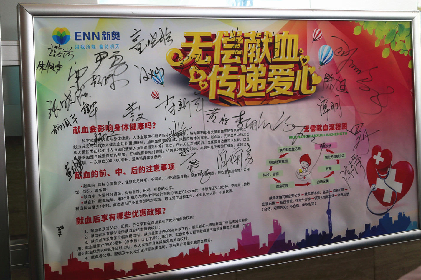 献血有量,爱心无限。虽然由于工作岗位的特殊性,很多一线员工不能及时赶到公司参加此次的义务献血活动,但今天暖意融融的活动现场依然传递出了我们株洲新奥人浓浓的爱意。